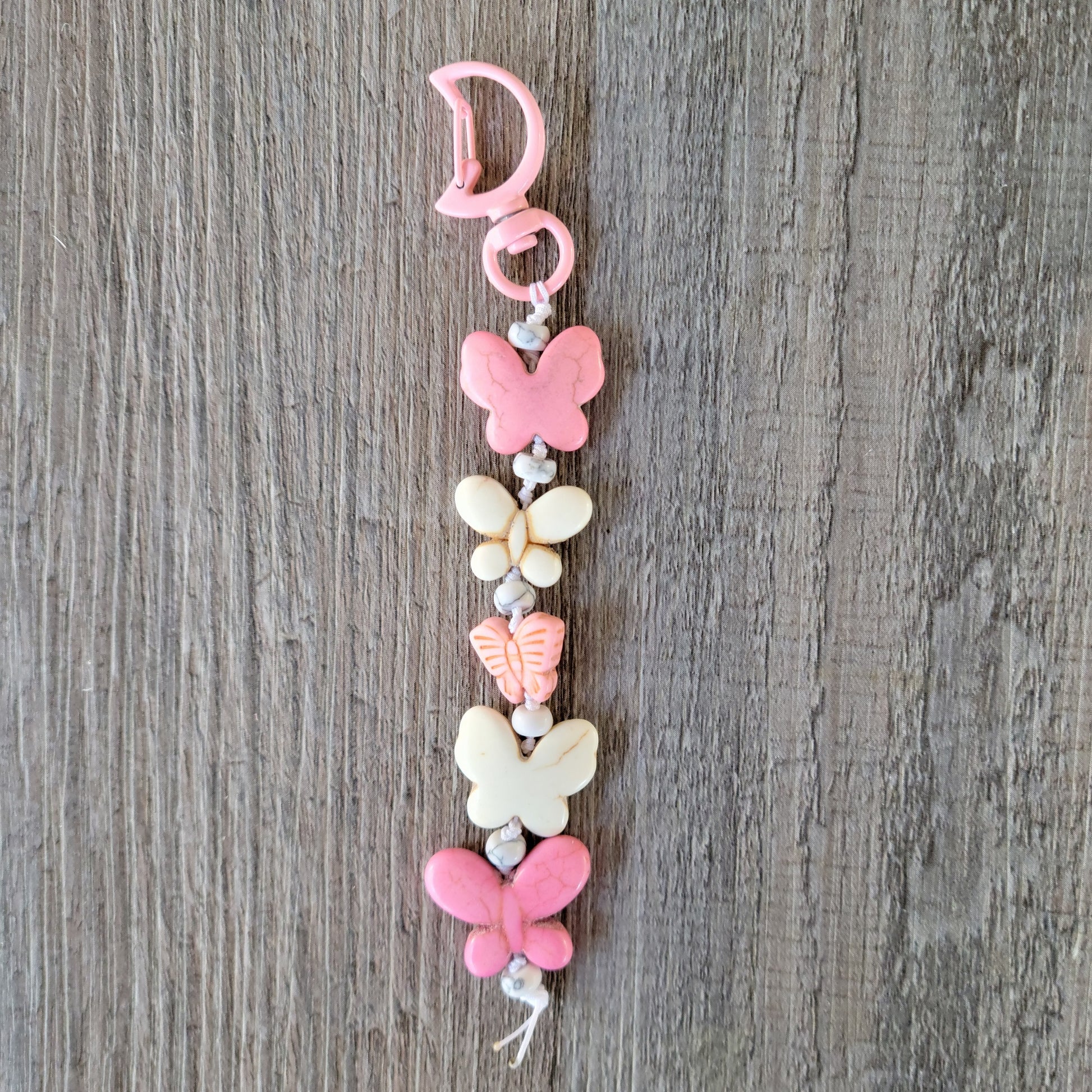 Positive affirmations are extra sweet when strung in pink and white butterflies. Comes with a printed affirmation card with five magical affirmations (to match the five stone butterflies) printed on the front for your favorite young person, and spaces to write their own affirmations on the back of the card. Choose between two versions of affirmation cards - See card #1 and #2 in the photos. Cute pink moon clasp makes it easy to attach to a backpack or hang in their bedroom or anywhere. Approximately 6 inches long from top to bottom. Because the beads are all natural stones, they may have slight variations in color and patterns. This is what makes your Story String unique!